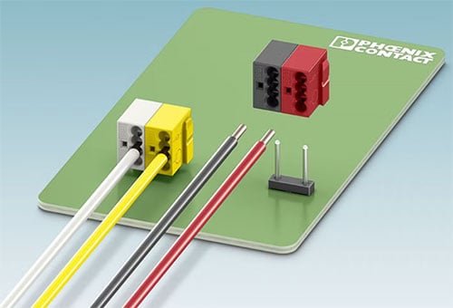 Phoenix Contact hat eine neue Serie von Federkontakt-Anschlussblöcken (PTS 0.5, Print Terminal Spring) und Stiftleisten (PST 1.0, Pin Strip Terminal) für KNX-Twisted-Pair-Netzwerke eingeführt, die mit 9,6 Kilobit pro Sekunde (kbit/s) arbeiten. Die Steckverbinder PTS 0.5, wie die 1574299 und 1574300 (Abbildung 1), sind frei hängende, zweipolige Steckbuchsen mit einem Raster von 5,75 Millimetern (mm), die Drähte mit einem Querschnitt von 18 bis 22 AWG oder metrischen Größen von 0,34 bis 0,75 mm2 aufnehmen können. Dazu gehören J-Y(ST)Y-Kabel mit Durchmessern von 0,6 bis 0,8 mm.