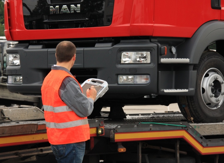 Der Versandprozess bei MAN beginnt bereits bei der Einfahrt des Transporters am Tor. Dort wird der Transporter mit einem mobilen Scanner registriert, wobei ein Datenabgleich sofort eventuelle Mängel aus vorherigen Audits anzeigt und angibt, ob ein Transporter gesperrt ist. Die Ladung auf dem Transporter wird ebenfalls registriert, um zusätzliche Ladungssicherungsmaßnahmen oder eventuell notwendige Umladungen bereits vor der Einfahrt auf das Gelände zu identifizieren. Nach Einfahrt beginnt die Verladung auf der für den Transporter zugewiesenen Spur. Sobald die Fahrzeuge aufgeladen und gesichert sind, beginnt ein MAN-Mitarbeiter mit dem Ladungssicherungs-Audit, für die auf den mobilen Geräten die entsprechenden Anwendungen bereitstehen.