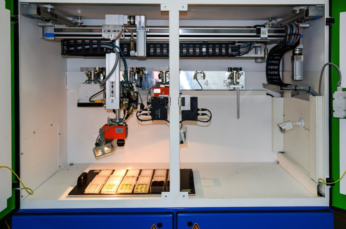 Im Hyper Aixpert bewegt ein Roboterarm Kameras auf einer Probenplattform, die flache Proben mit einer Größe von bis zu 20 cm enthält, wie junge Sämlinge, Kräuter oder Proben in MTP-Behältern und Petrischalen. Der Arm verfügt über ein Kamerawechselsystem, mit dem Kameras, die an der Rückwand des Schranks in Parkpositionen gelagert sind, angebracht werden können. Mit mehreren Proben pro Tablett und einem optionalen Trayprovider erreicht das System einen hohen Durchsatz an Laborproben.