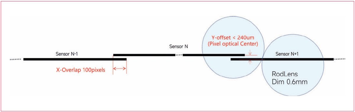 Mechanisch sind Contact-Image-Sensoren mehrere Einzelsensoren, die zusammengefügt werden. Dieses Konzept macht den Übergang zwischen einzelnen Sensoreinheiten zu einem kritischen Punkt und kann lokale Helligkeitssprünge, minimale geometrische Versätze oder sichtbare Nähte zur Folge haben, die sich negativ auf die Fehlererkennung auswirken. Insnex adressiert diese Herausforderung mit ihrer sogenannten Zero-Gap-Stitching-Technologie auf Basis zweireihiger Sensoren mit sehr enger Rasterteilung. Der Überlappungsbereich liegt bei mehr als 100 Pixeln, sodass keine Lücken oder fehlende Pixel entstehen. Ergänzt wird dies durch eine proprietäre Echtzeit-Stitching- und Fusionstechnologie, die eine koaxiale Ausrichtung der optischen Achse ermöglicht, Graustufenunterschiede zwischen den einzelnen Sensoreinheiten eliminiert und die Bildhomogenität durch eine adaptive Multisensorkalibrierung verbessert.