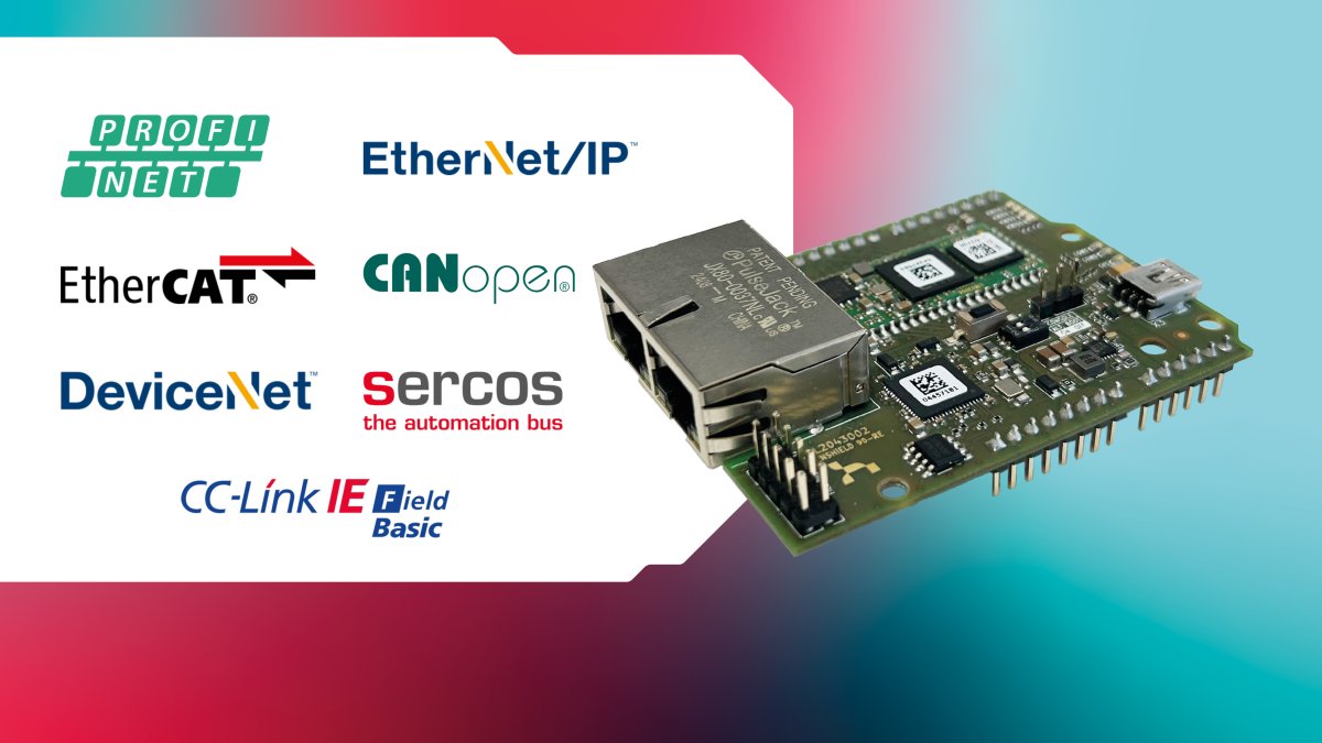 Mit dem netShield 90-RE stellt Hilscher ein leistungsfähiges Evaluierungsboard für STM32-Nucleo-64 als auch Nucleo-144-Anwendungen vor. Es basiert auf dem netX 90 von Hilscher – dem laut Unternehmen kleinsten multiprotokollfähigen Netzwerkcontroller auf dem Markt – und unterstützt gängige industrielle Ethernet- und Feldbusprotokolle wie Profinet, Ethernet/IP oder Ethercat. Der netX 90 wird dabei als Companion Chip zum STM32-Prozessor eingesetzt. Durch seine ARM-basierte Dual-Core-Architektur trennt er strikt Kommunikations- und Applikationsverarbeitung. Das ermöglicht deterministische Netzwerkanbindung bei gleichzeitig niedriger Latenz und hoher Flexibilität.
