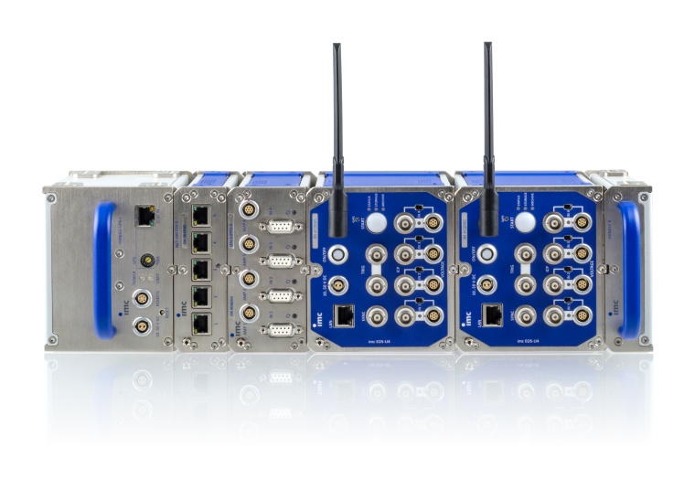 Werden viele derartige Messkanäle benötigt, so kann das Gesamtsystem flexibel erweitert werden, indem mehrere Imc-EOS-Geräte kaskadiert und via Ethernet vernetzt werden. In gleicher Weise lassen sich auch alle anderen Messsysteme aus dem Imc Programm mit Imc EOS gemeinsam betreiben. Alle Geräte der Plattform wie Imc Cronos, Imc Spartan, Imc-C-Serie oder Imc Busdaq sind im Verbund synchron und vernetzt einsetzbar. So können alle Signal und Kanaltypen, vom klassischen DMS über Feld und Fahrzeugbusse (CAN-FD, XCPoE, ARINC etc.) bis hin zu den Telemetrie-Komponenten, gemeinsam in der PC- basierten Betriebssoftware Imc-Studio synchron und uniform zusammengeführt werden. Zudem ist damit auch eine Live-Signalanalyse mit Imc-Inline-Famos möglich.