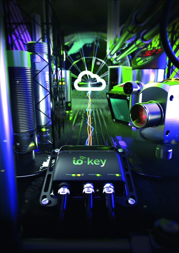Der io-key ist eine solche Systemlösung aus Gateway, SIM mit Datenflatrate und Cloud-Umgebung. In dieser Grundkonfiguration bietet er die Möglichkeit, in sehr kurzer Zeit und auch ohne Eingriff in die IT, Sensordaten in der Cloud für unterschiedliche Remote-Anwendungen verfügbar zu machen. Das Gerät wird an der Anlage angebracht und mit ei-ner der jeweiligen Aufgabe entsprechenden Sensorik verbunden. Darüber kann die Maschine via Cloud mit dem Anwender kommunizieren – und umgekehrt. Von der Online-Bestellung des io-key-Pakets bis zur stabil laufenden Lösung vergehen keine 24 Stunden, die Inbetriebnahme selbst ist weitgehend automatisiert und dauert weniger als eine Minute. In unter 60 Sekunden erkennt der io-key aus mehr als 10.000 IO-Link-Sensoren von über 200 Herstellern automatisch die angeschlossenen Sensoren, bringt ihre Daten über Narrowband-IoT oder 2G in eine individuelle, zugriffgeschützte Cloudumgebung und visualisiert sie in einem übersichtlichen Dashboard.