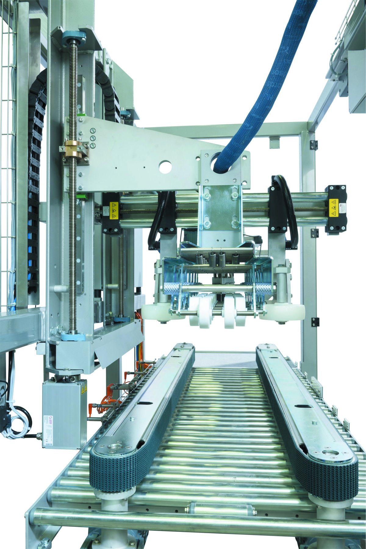 Fördertechnik ist ein wichtiger Bestandteil in Verpackungs- und Palettieranlagen. RK Rose+Krieger liefert Lösungen vom einfachen Transport zwischen zwei Stationen bis hin zum Sortieren, Ausrichten oder Positionieren eines Handhabungsobjekts mit automatisierter Formatverstellung. Für die automatisierte Formatverstellung werden je nach Anforderung Einrohr-Linearachsen E, Doppelrohr-Linearachsen EP/EP(X) sowie Profil-Linearachsen Quad EV verwendet. Dazu kommt bei Bedarf ein Stellantrieb von Lenord+Bauer mit Aluminium- oder Edelstahlgehäuse. Führungsschienen in Kombination mit Klemmelementen, Sensoren und Lichtschranken sorgen für den unterbrechungsfreien Transport. Die Fördersysteme basieren auf Blocan-Profilen, die mit Hilfe von dynamischen Elektrozylindern auch in der Höhe verfahren werden können. Diese bieten gegenüber pneumatischen Antrieben den Vorteil, dass sich die laufenden Energiekosten reduzieren. Über den gesamten Lebenszyklus betrachtet, bietet der Elektrozylinder – trotz höherem Anschaffungspreis – somit Kostenvorteile.