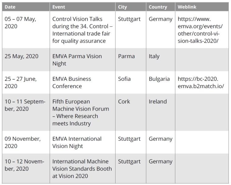 After the summer break, from 10 to 11 September, the fifth edition of the European Machine Vision Forum will take place this time in Cork/Ireland again under the slogan “Where Research meets Industry.” Focal topic in 2020 will be “Accuracy, Reliability and Limits of Machine Vision.” And after one year of absence, the last quarter 2020 will clearly be dominated by Vision 2020 taking place from 10 to 12 November at Messe Stuttgart. Here, the EMVA again will act as leading organizer of the International Machine Vision Standards Booth jointly with its partner associations around the world. Furthermore, in good tradition on the evening prior to the trade fair opening, the EMVA hosts the EMVA International Vision Night, a get-together event in the forefront of the busy trade show days. This event will take place in a new location paying tribute to pure local Swabian food traditions.