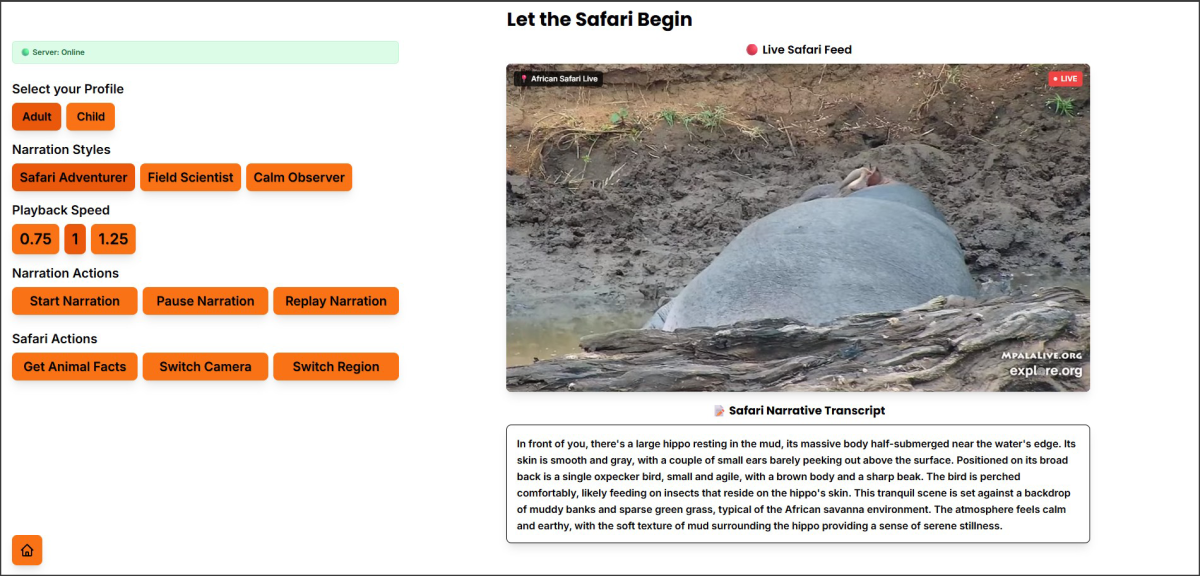 The resulting prototype allows blind and visually impaired individuals to embark on virtual video safaris. It integrates publicly available wildlife webcams from various regions and uses an MLLM to analyze and evaluate the live footage. Different profiles and modes are available to meet various needs. A text-to-speech system delivers descriptions and explanations. The prototype demonstrates the technical feasibility and potential of Inclusive AI and ACI. However, limitations must be considered, such as those associated with commercial MLLMs and occasionally inaccurate descriptions. Further research and development are required to make the experience truly inclusive and autonomous.