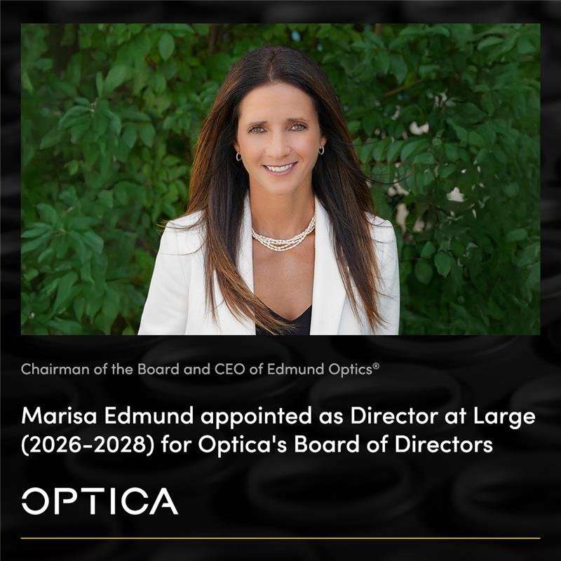 Marisa Edmund, Chair of the Board of Directors and CEO, has been appointed Director at Large of the Optica Board of Directors for the 2026-2028 term. Optica, formerly The Optical Society of America, is a global association for the advancement of optics and photonics. The Board is comprised of leaders from academia, industry and research who set the strategic direction of the organization. Edmund's appointment underscores her strategic vision and commitment to optical science and technology.
