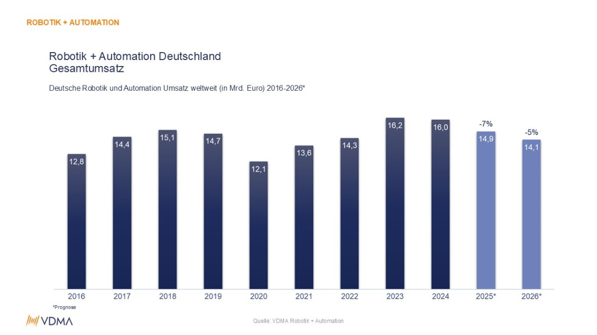 The German robotics and automation industry is facing ongoing challenges. The VDMA Robotics + Automation expects sales to fall by 5% to EUR 14.1 billion in 2026. This is due to weak demand from key customer industries, geopolitical uncertainties and unfavorable economic conditions. The industry already recorded a 7% decline in sales in 2025, revealing structural weaknesses and increasing the pressure to act.
