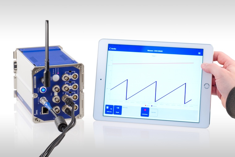 Werden viele derartige Messkanäle benötigt, so kann das Gesamtsystem flexibel erweitert werden, indem mehrere Imc-EOS-Geräte kaskadiert und via Ethernet vernetzt werden. In gleicher Weise lassen sich auch alle anderen Messsysteme aus dem Imc Programm mit Imc EOS gemeinsam betreiben. Alle Geräte der Plattform wie Imc Cronos, Imc Spartan, Imc-C-Serie oder Imc Busdaq sind im Verbund synchron und vernetzt einsetzbar. So können alle Signal und Kanaltypen, vom klassischen DMS über Feld und Fahrzeugbusse (CAN-FD, XCPoE, ARINC etc.) bis hin zu den Telemetrie-Komponenten, gemeinsam in der PC- basierten Betriebssoftware Imc-Studio synchron und uniform zusammengeführt werden. Zudem ist damit auch eine Live-Signalanalyse mit Imc-Inline-Famos möglich.